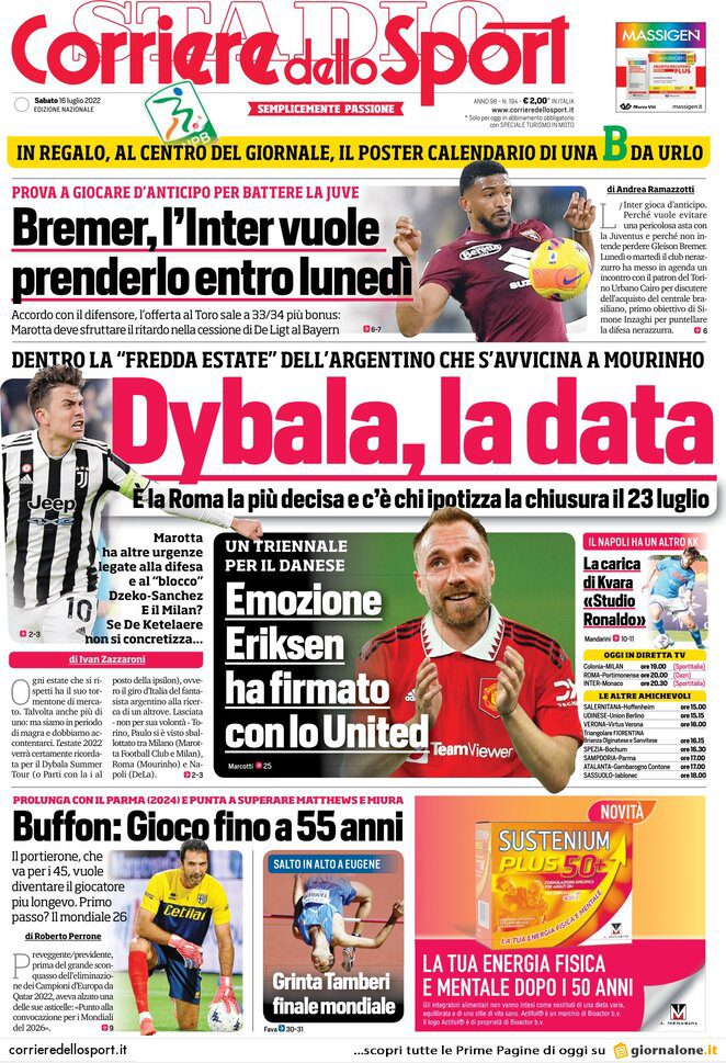 GAZZETTA DELLO SPORT – Della “garanzia” Ghiglione parla anche il quotidiano in rosa, che dà per conclusa la trattativa tra grigiorossi e Genoa per l’approdo del laterale destro a Cremona a titolo definitivo. Un breve trafiletto riprende anche i calendari di Serie B, poi delineati giornata per giornata da pagina 31 in avanti, e commenta, relativamente alla prima giornata: “il Genoa sarà a Venezia nel revival dell’ultima Serie A, come a Parma e Palermo sarà difficile distinguere la categoria“.