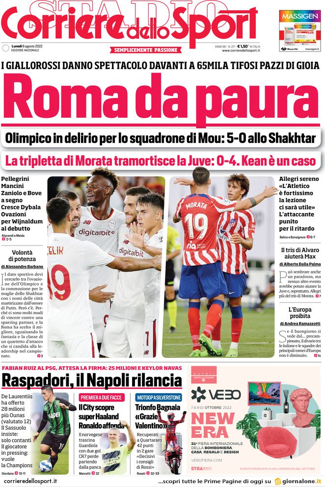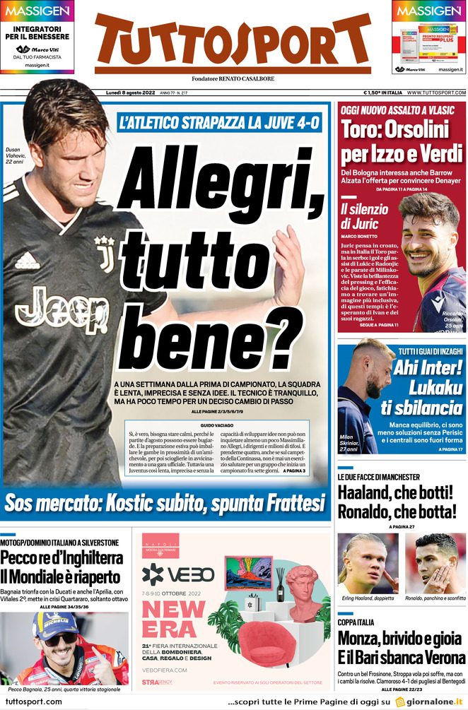 GAZZETTA DELLO SPORT – “Sempre effetto Blessin. In 10mila per il Genoa” è invece il titolo che compare all’interno del quotidiano in rosa questa mattina. Poche righe introducono al sedicesimo di finale di Coppa Italia, la prima uscita stagionale del Grifone di Blessin che settimana prossima esordirà anche in campionato contro il Venezia.
