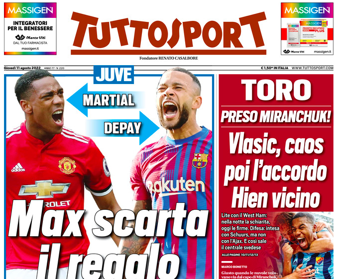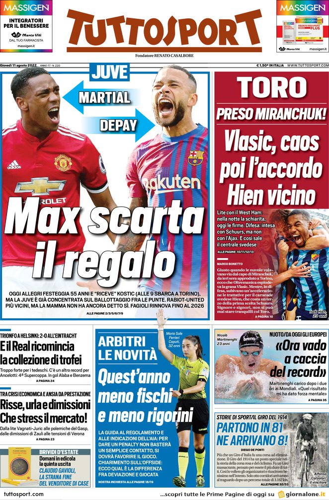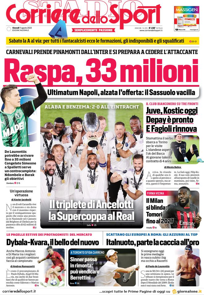 GAZZETTA DELLO SPORT – Oltre a parlare dell’emergenza Covid in casa Venezia, con il giro di tamponi che verrà ripetuto nel fine settimana (ma recuperati dagli infortuni Haps, Andersen e Connolly), si parla della Serie B che è in procinto di partire. Si parla delle mosse delle 20 squadre del campionato cadetto e viene dato risalto alla scelta del Genoa di affidarsi a Massimo Coda come attaccante, nonché ad Alexander Blessin come guida tecnica in panchina.