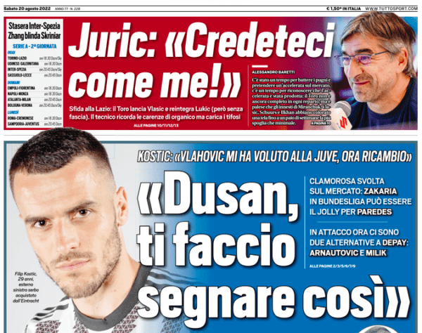 CORRIERE DELLO SPORT – Il quotidiano parla di Fabio Caserta, tecnico del Benevento, e del fatto che si giocherà la panchina questa sera nella sfida contro il Genoa. “De Rossi è pronto” in caso di risultato negativo o di prestazione che non soddisfi. Vengono riprese anche le parole che il tecnico sannita ha rilasciato alla stampa nella giornata di ieri.