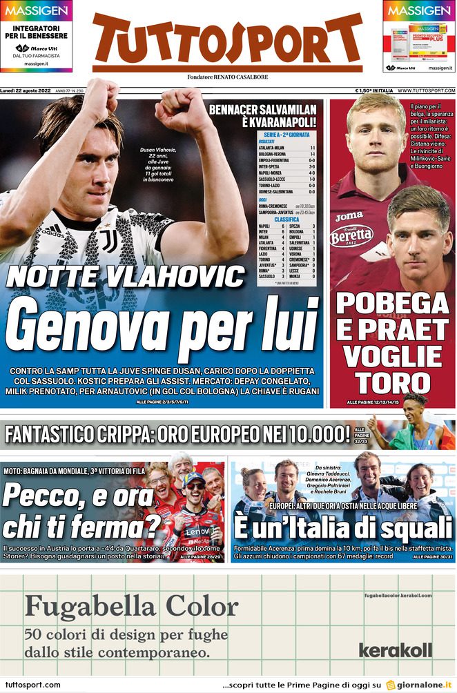 REPUBBLICA – L’edizione genovese di Repubblica torna sulla gara pareggiata dal Genoa contro il Benevento. “L’assedio non ha pagato, ma il rigore che manca fa infuriare l’ambiente” titola il quotidiano, che poi ribadisce come Blessin avesse avvertito delle difficoltà che la sfida avrebbe riservato alla sua squadra e come il Genoa, supportato da uno stadio con oltre 20mila spettatori, abbia deciso di prorogare al 3 settembre prossimo la campagna abbonamenti. Sul fronte mercato, anche qui, tornano i nomi di Aramu (tra oggi e domani le visite mediche) e Puscas, per il quale la trattativa si starebbe orientando verso un prestito con diritto di riscatto.