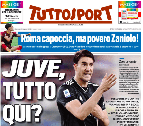 CORRIERE DELLO SPORT – Si parla soprattutto di Serie B e del fatto che le prime venti partite hanno visto sfiorare le 200mila presenze sugli spalti, pochissime centinaia in meno del campionato 2006/2007 che vide ai nastri di partenza non soltanto il Genoa, ma anche Napoli e Juventus. Sul fronte mercato, in attesa di Aramu che arriverà oggi e svolgerà domani le visite, si parla di trattativa ormai definita per Kallon all’Hellas Verona.