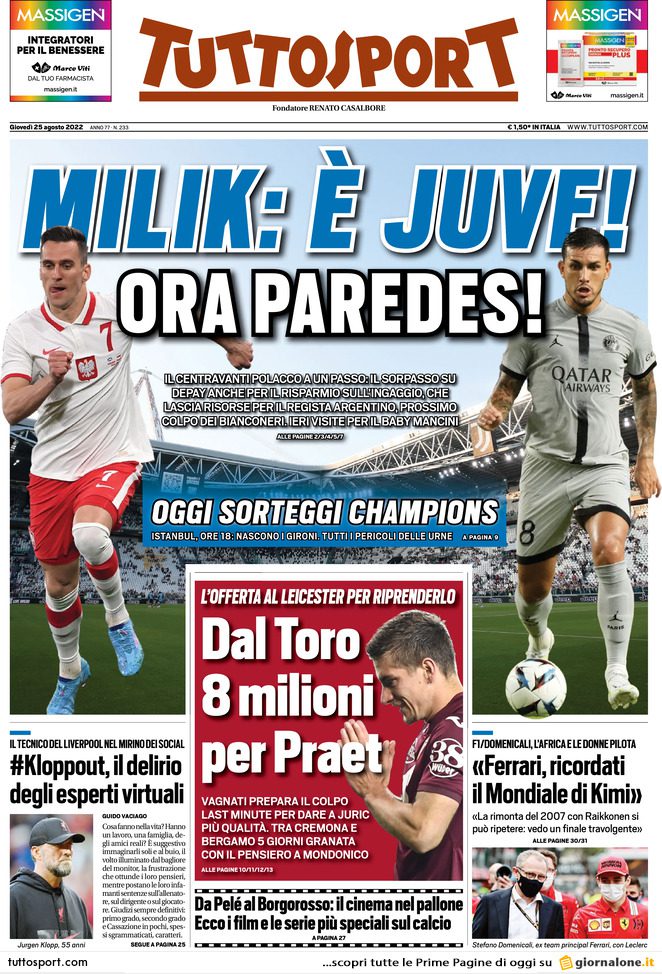 TUTTOSPORT – Chiude Tuttosport con un “Genoa, che colpi: Aramu, Puscas e pure Strootman“. Anche qui si parla dell’operazione “lampo” che ha riportato l’olandese, 32 anni ex Marsiglia, a vestire i colori rossoblu. Oggi, invece, le visite di Puscas in attesa delle ufficialità di rito.