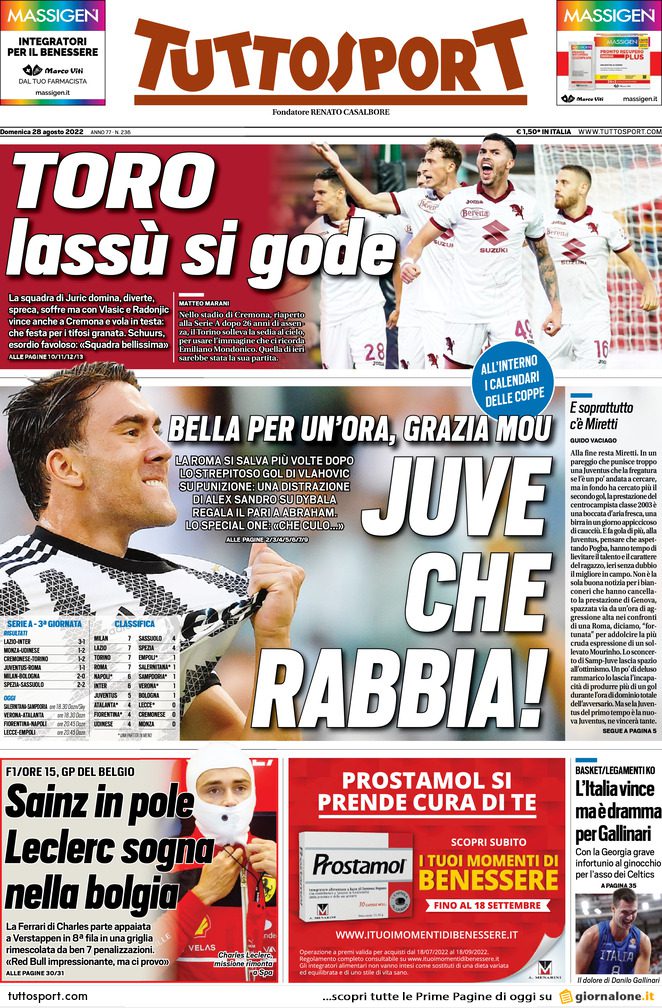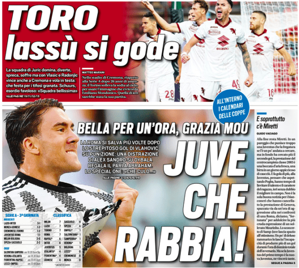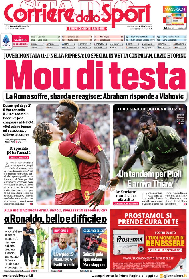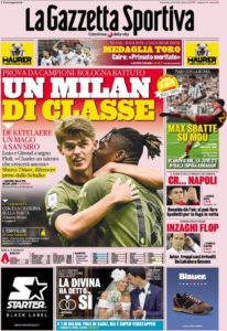 GAZZETTA DELLO SPORT – Anche per la rosea si va verso la conferma degli undici scesi in campo nelle prime due uscite stagionali in campionato contro Venezia e Benevento. Il modulo col quale verrebbero schierati è, secondo il quotidiano in rosa, un 4-4-2.
