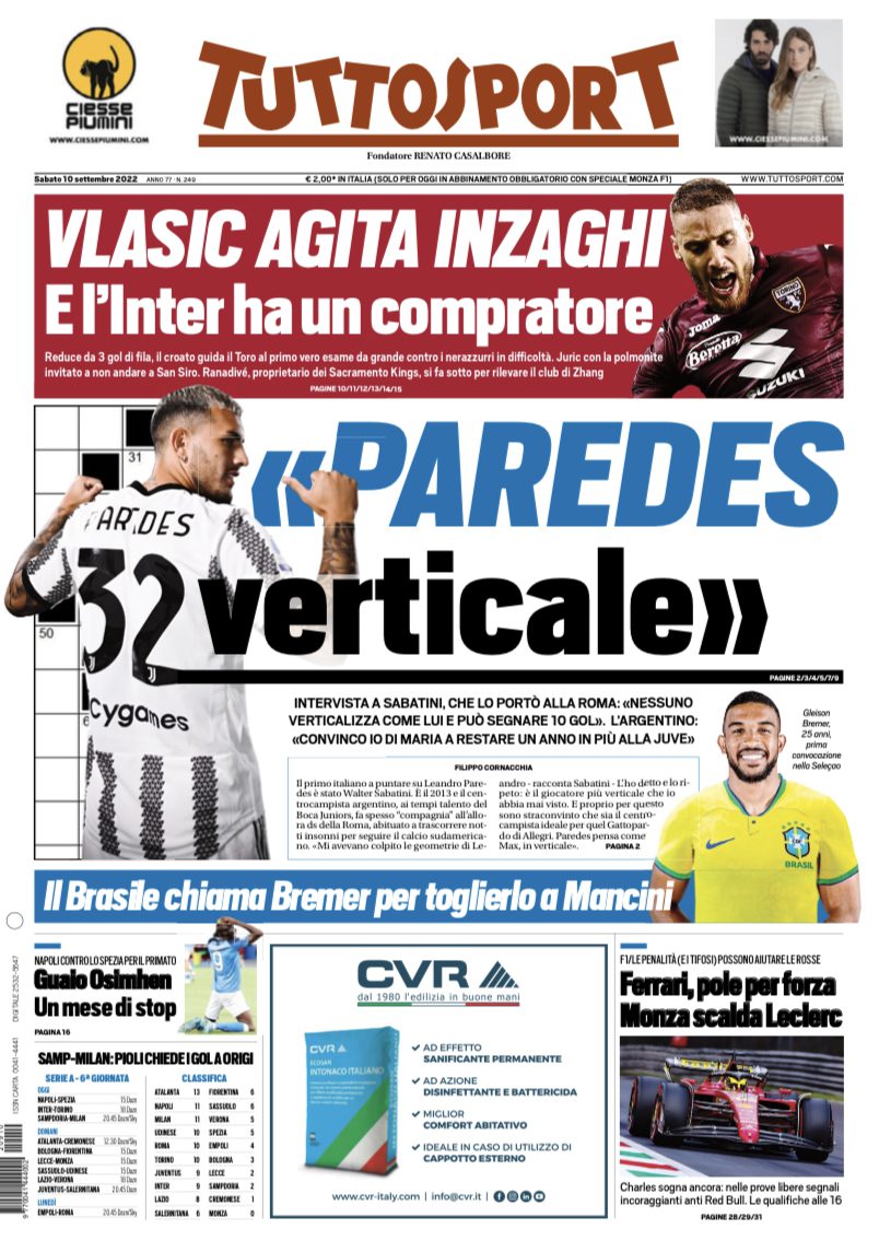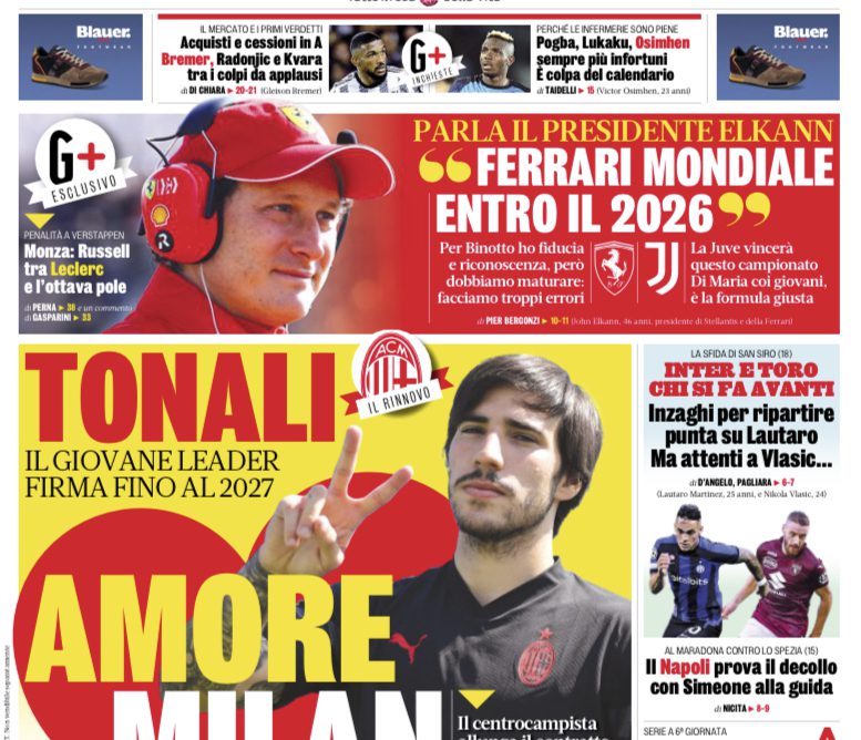 GAZZETTA DELLO SPORT – “È il Palermo di Brunori. Il bomber vince il duello con Coda, frenata Genoa“. È questo il titolo della rosea per introdurre alla sfida del Barbera, vinta dai rosanero, che coincide con la prima sconfitta del Genoa di mister Blessin. “Strappo dei rosanero, il Barbera in delirio: è proprio la settimana nera degli allenatori tedeschi. Tuchel esonerato al Chelsea, Klopp bastonato a Napoli e Alexander Blessin da Stoccarda che incassa la prima sconfitta“. La Gazzetta dello Sport rileva, in chiusura, un possibile, leggerissimo tocco di Nedelcearu sul tiro-cross di Coda che si sarebbe insaccato in rete nel finale senza tocco di Bani: se così fosse, se fosse giocata volontaria, Bani sarebbe stato rimesso in gioco. “Questo è il dilemma: palla in gol, ma Cosso ha annullato“.
