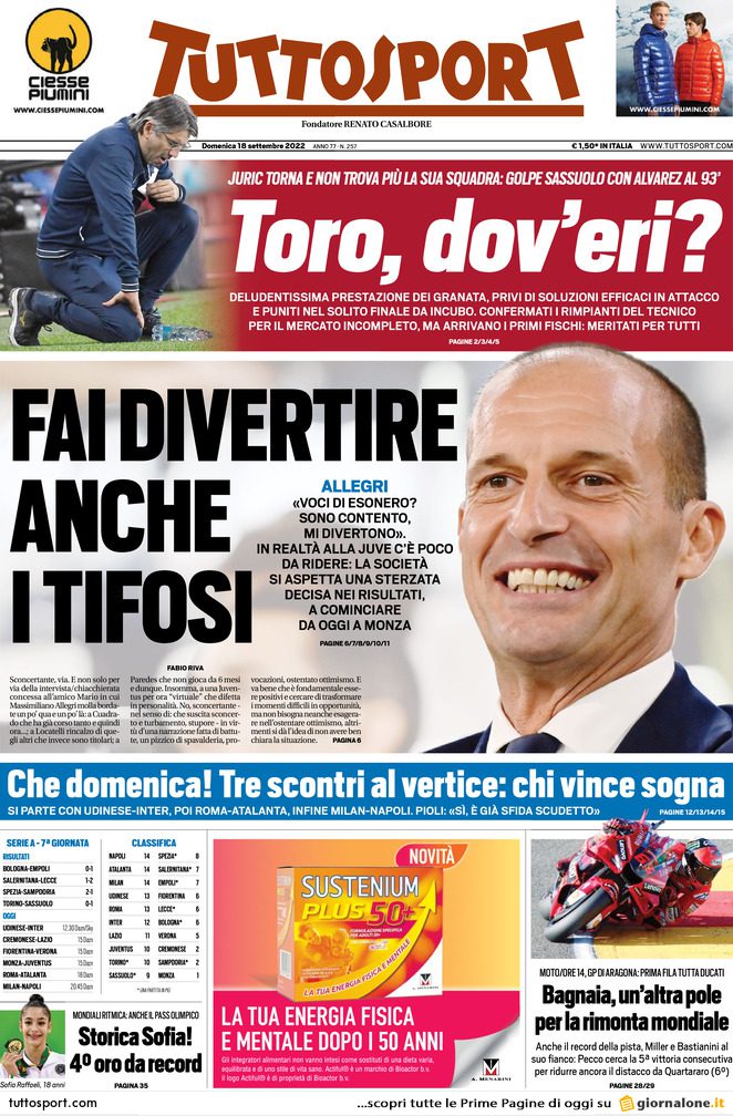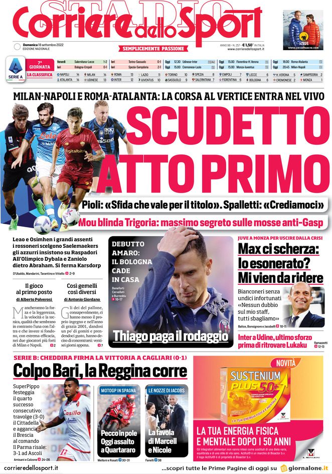 SECOLO XIX – “Il Genoa riprende la corsa, Jagiello infilza il Modena. E c’è la sosta da sfruttare” è il titolo proposto stamane dal Decimonono, che non manca di mettere in evidenza aspetti positivi e negativi della prestazione del Genoa che “ancora una volta non chiude il match“, pur arrivando a conquistare una “partita-bivio“. “Ora vanno risolti alcuni nodi tattici e va data brillantezza a Coda e agli ultimi arrivati” prosegue il quotidiano, che evidenzia come ieri al Ferraris fossero presenti i vertici del gruppo 777 Partners, Don Dransfield compreso. Spazio alle parole di Jagiello così come a quelle di mister Blessin, con ampio risalto alla “felicità a metà” del tecnico rossoblu, che respinge le voci di crisi: “Si è parlato di crisi, che noi nn vediamo“. Infine, spazio alla notizia del successo esterno della Primavera (3-0 sull’Albinoleffe) e dell’esordio, questo pomeriggio, della Prima Squadra del Genoa Women contro il Tavagnacco nella Serie B Femminile.