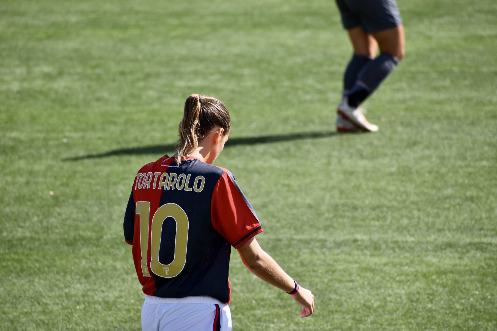 Il Genoa, per larga parte del primo tempo, si difende in maniera arcigna e non risparmia il duello fisico. Al 40′, al termine di un primo tempo in affanno, il Genoa passa in vantaggio sfruttando un calcio piazzato conquistato da Tortarolo e realizzato dalla stessa numero 10 rossoblu con una pregevole punizione all’incrocio. Si va all’intervallo col punteggio di 1-0 a favore del Grifone.