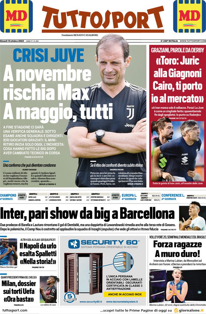 SECOLO XIX – Il Decimonono questa mattina parla della statistica che vedo il Genoa non aver mai vinto al “San Vito-Marulla” di Cosenza, uno stadio definito “stregato” con le sue 10 gare senza vittorie. “Blessin prova a ribaltare la statistica” puntando su un Genoa “corsaro” con tre successi nelle prime tre gare esterne della stagione. Sempre l’edizione odierna intervista il doppio ex della sfida, Alberto Urban, al Genoa nella stagione 1989/90. “Il Cosenza corre e gioca, ma il Genoa è da Serie A. È la mia partita, ho soltanto ricordi bellissimi. Sinceramente mi aspettavo un Genoa con qualche punto in più. Ha una qualità incredibile. Blessin lo deve riportare in A“. Un approfondimento a parte parla anche dei 700 biglietti già staccati dai tifosi del Genoa per la trasferta cosentina, con l’obiettivo di raggiungere almeno quota mille.