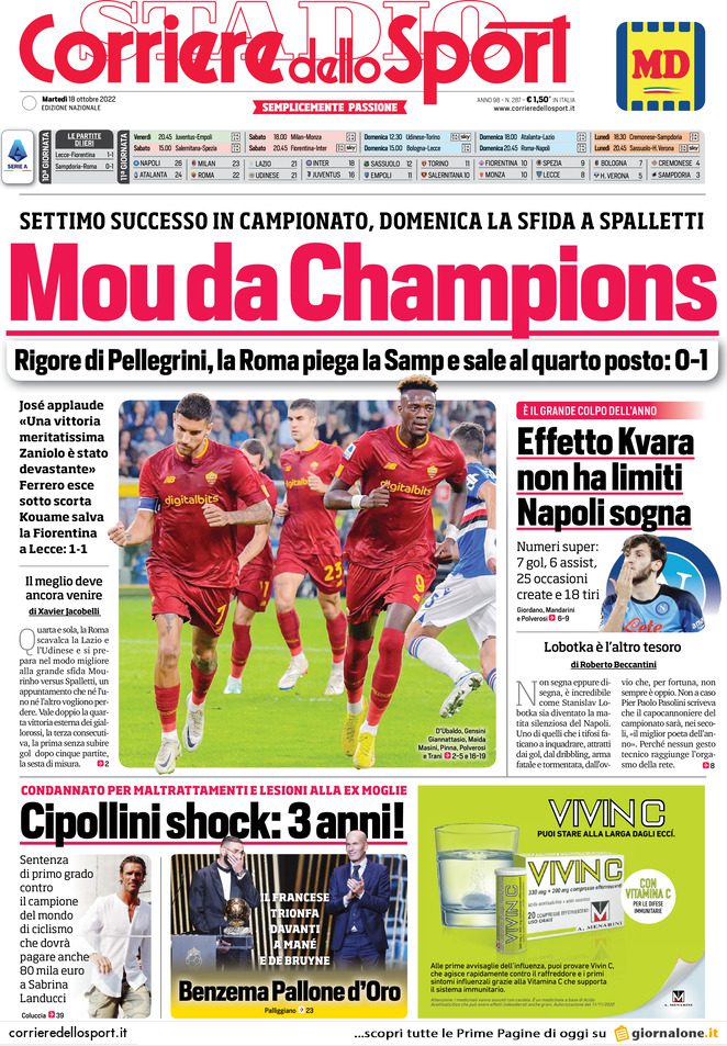 CORRIERE DELLO SPORT – “De Rossi si gioca la Roma” è il titolo che compare stamane sul Corriere dello Sport a presentare la gara del Ferraris valida per l’accesso agli ottavi di finale di Coppa Italia. “Sfida al Genoa con in palio una serata con i giallorossi“, di cui è grande ex. Si parla anche delle molte, possibili novità di formazione che vareranno entrambi gli allenatori. Nello specifico, Blessin dovrebbe lanciare Puscas come unica punta.