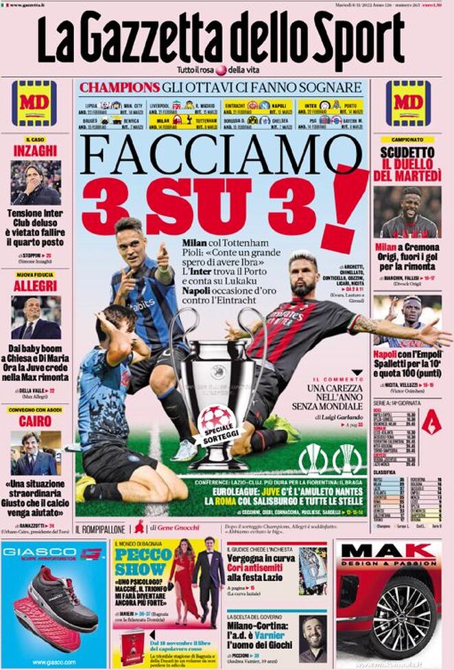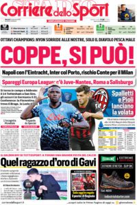 CORRIERE DELLO SPORT – “Una Reggina infinita, Inzaghi piega Blessin” è il titolo del Corriere dello Sport che apre alla cronaca della gara del Granillo vinta dai padroni di casa. “Spettacolo e battaglia la Granillo. I calabresi vincono ancora e agganciano i liguri al secondo posto“. Si parla anche della vittoria numero 300 della Reggina in Serie B, delle parole nel dopogara di Inzaghi (“partita perfetta, che gioia“) e del premio consegnato dal presidente amaranto Cardona a quello rossoblu Zangrillo “per aver fornito un contributo medico-scientifico importantissimo alla lotta al Covid-19“.