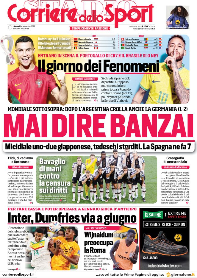 GAZZETTA DELLO SPORT – Nessun focus dedicato al Genoa, ma un unico approfondimento col quale il quotidiano in rosa anticipa il possibile rientro dalla ripresa del campionato di alcuni giocatori fra i “big” del campionato. Per il Genoa figurano Sturaro e Ilsanker, pronti a rientrare nelle rotazioni a disposizione di Blessin.