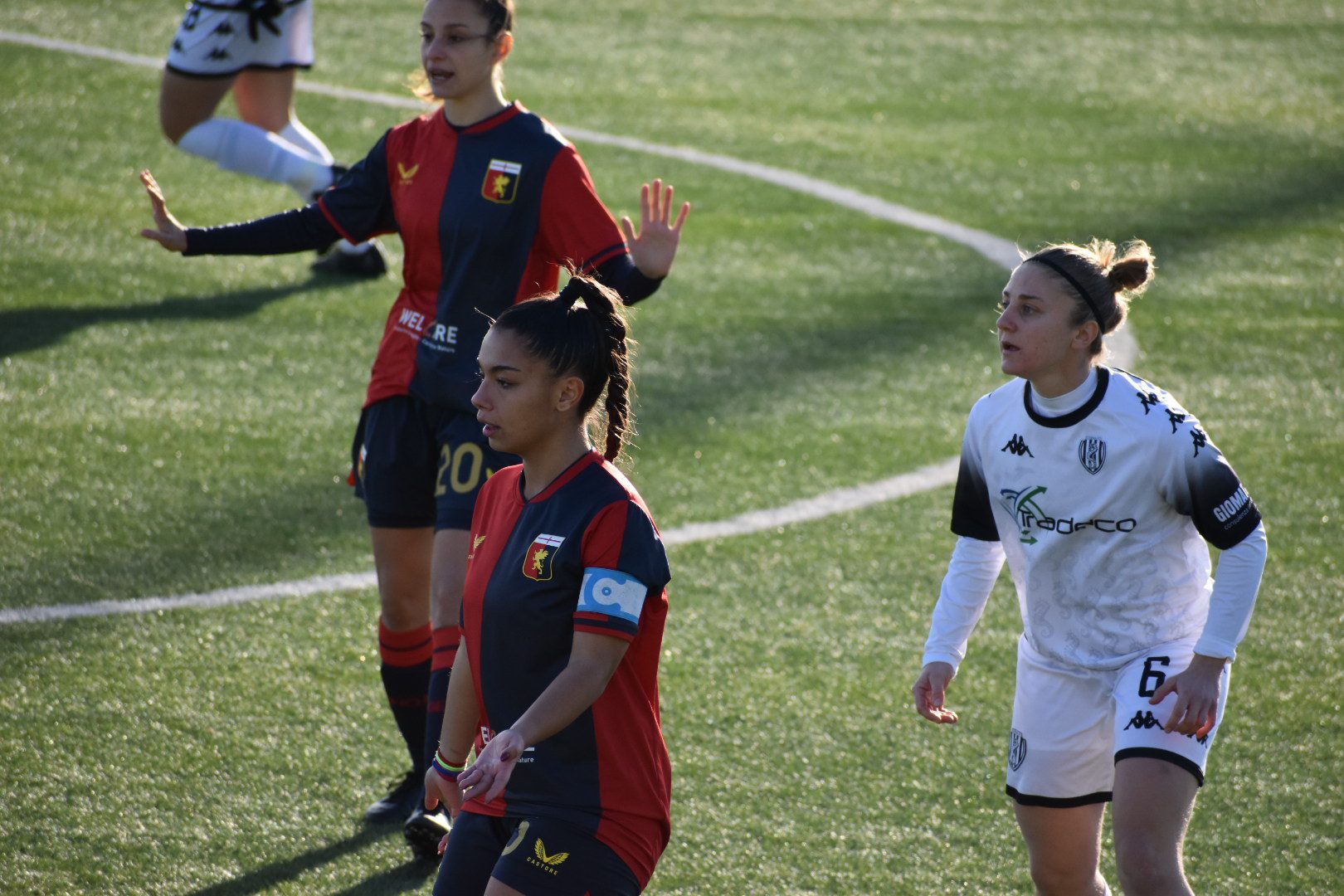 Il finale di tempo non esce dai binari descritti in precedenza, col Genoa che cerca rapidamente le attaccanti quando riesce a riconquistare il possesso pallone e il Cesena che si affida agli esterni e al lancio a scavalcare Lucafò e Spotorno, sempre particolarmente attente. All’intervallo, dopo due minuti di recupero, si andrà all’uno a zero per le rossoblu.