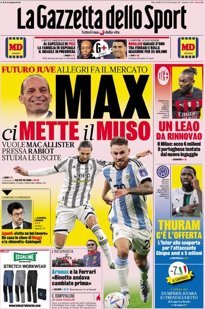 TUTTOSPORT – “Sono panchine mondiali” è invece il titolo di Tuttosport, che ritorna sul tema già affrontato dei tre ex Campioni del Mondo azzurri che guidano Frosinone, Reggina e Genoa e occupano in fila le prime tre posizioni della classifica di Serie B. “Gilardino, con quattro gare super, è stato promosso dal Genoa: non più ad interim ma definitivo“.