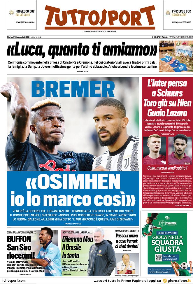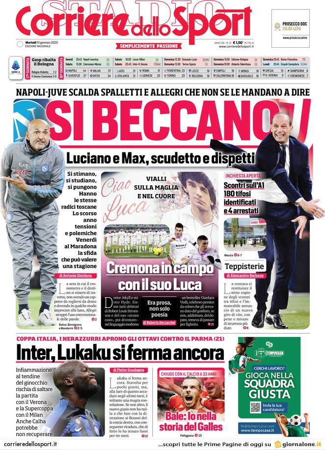 CORRIERE DELLO SPORT – Si parla ancora una volta di Massimo Coda, finito nel mirino di molte squadre. L’ultima in ordine di tempo è il Benevento, che però si è reso conto che l’attaccante “costa un occhio” sia in termini di prezzo del cartellino che in termini di ingaggio. Sul fronte Coppa Italia e sfida tra Roma e Genoa, si va verso le 55mila presenze allo stadio Olimpico.