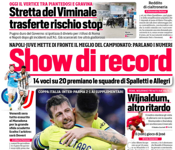 CORRIERE DELLO SPORT – Nel segnalare la vittoria del Genoa Primavera contro il Sassuolo in Coppa Italia, il quotidiano sportivo parla della gara di domani sera tra Roma e Genoa. “Cala il gelo, ma all’Olimpico c’è il pienone” titola il Corriere dello Sport, che riporta come il pubblico si aggirerà intorno alle 60mila persone. Vi è anche un approfondimento sulla Serie B e sul girone di ritorno che sta per cominciare. “Genoa, Bari, Pisa e Parma non hanno nessuna intenzione di mollare. Ecco perché non bisogna dare nulla per scontato” scrive il quotidiano sportivo. Anche l’ex tecnico Calori parla del campionato cadetto e sostiene che “la gestione delle crisi, che tutti avranno, può fare la differenza. Genoa e Parma sono esempi visibili, come la Ternana“. Parla anche Semplici, ex tecnico del Cagliari che proprio sul momento dei sardi viene interpellato.