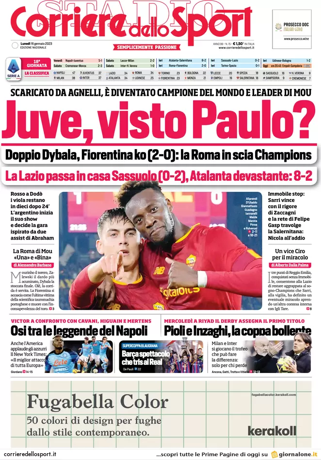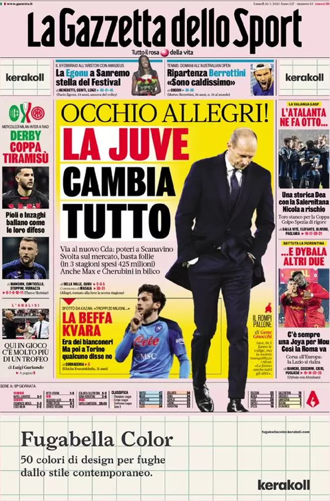 CORRIERE DELLO SPORT – molto breve l’approfondimento a pagina 26 del Corriere dello Sport relativamente a Genoa-Venezia. Una ventina di righe riprendono le parole della vigilia da parte dei due allenatori, ma è soprattutto il titolo a ben raccontare quale gara si profila questa sera al Ferraris. “Il Genoa a caccia del tris. Il Venezia pensa a salvarsi“. Il Genoa, peraltro, rincorre un dato che quest’anno gli è sempre mancato: vincere tre gare di fila. “Non è mai successo quest’anno di vincere tre partite di fila” evidenzia il Corriere dello Sport prima di proporre le sue probabili formazioni. Vi è solo un’altra menzione del Genoa, quando si parla di Nicholas Rizzo, difensore 22enne di ritorno dallo Standard Liegi e diretto alla Pro Vercelli.