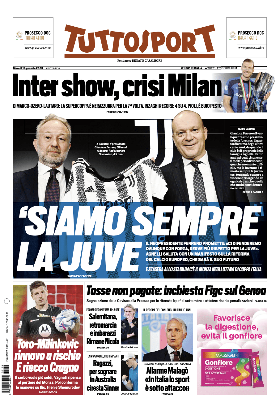 TUTTOSPORT – Per ultima, ma non per ultima, finisce la notizia che più di tutte si prende la scena questa mattina. La rilancia Tuttosport fin dalla prima pagina dove compare un “tasse non pagate: inchiesta FIGC sul Genoa“. In attesa di eventuali comunicazioni ufficiali della società in risposta a questo articolo, di cui vi daremo opportuna diffusione quando le riceveremo, il quotidiano si focalizza su una segnalazione della Covisoc rispetto a quello che sarebbe il mancato versamento delle ritenute Irpef di settembre e ottobre 2022, relative agli stipendi saldati nei mesi di agosto e settembre.
