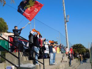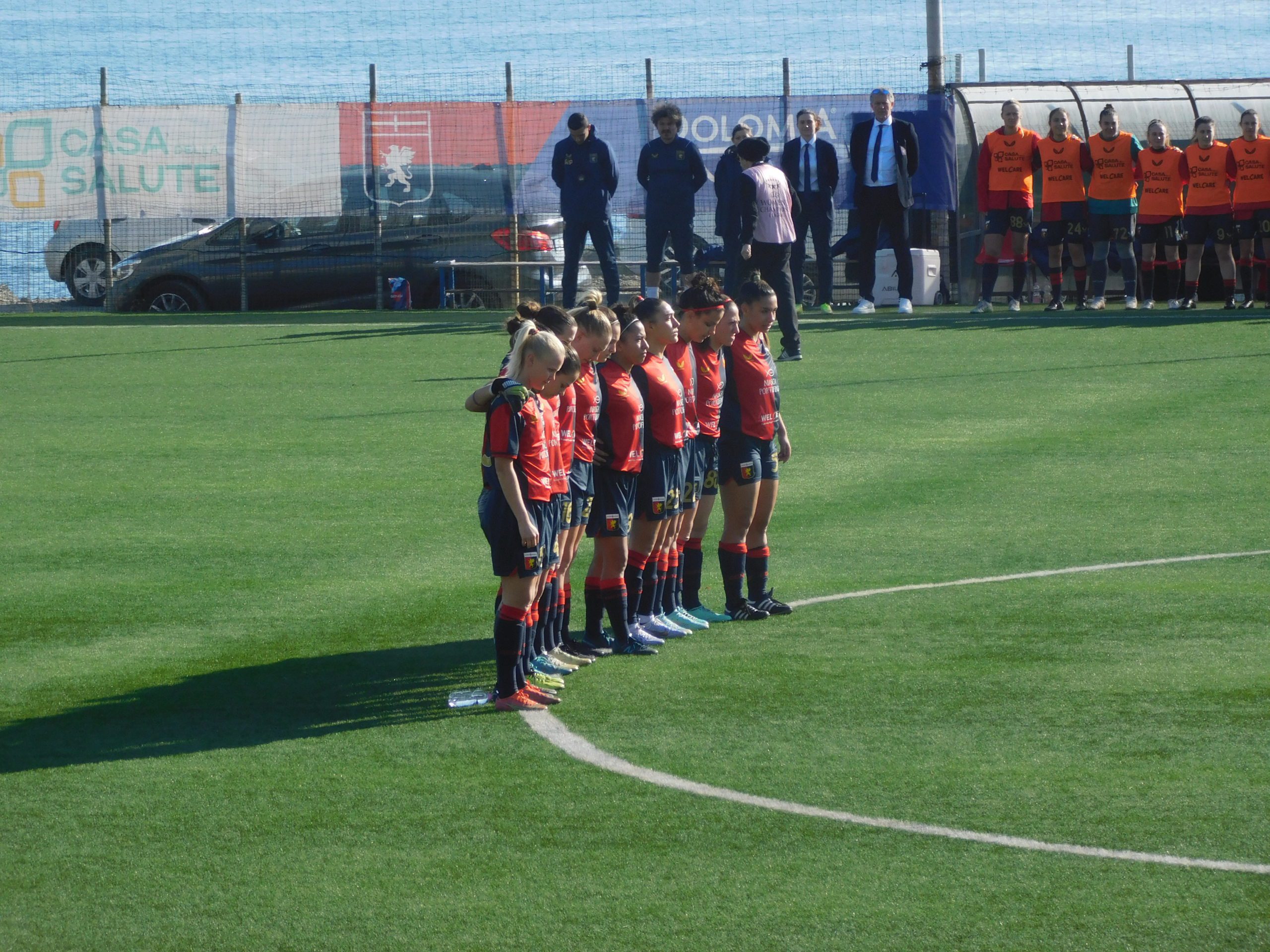 Nonostante il calendario segni metta febbraio, la temperatura è tutt’altro che invernale: quindici i gradi centigradi. Sugli spalti del sono un centinaio gli spettatori; tra i presenti, oltre a un folto gruppo di tifosi del Genoa accorsi con vessilli di ogni tipo, anche la responsabile dell’area tecnica del Genoa Women Marta Carissimi. Prima del fischio d’inizio, è stato osservato un minuto di silenzio per le vittime del terremoto di Turchia e Siria.