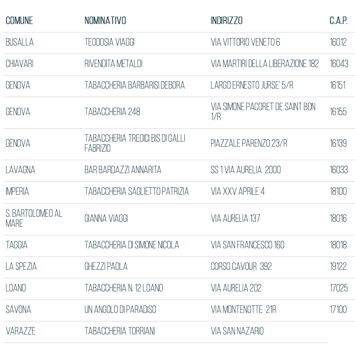 L’ELENCO DELLE RICEVITORIE TICKETONE IN LIGURIA