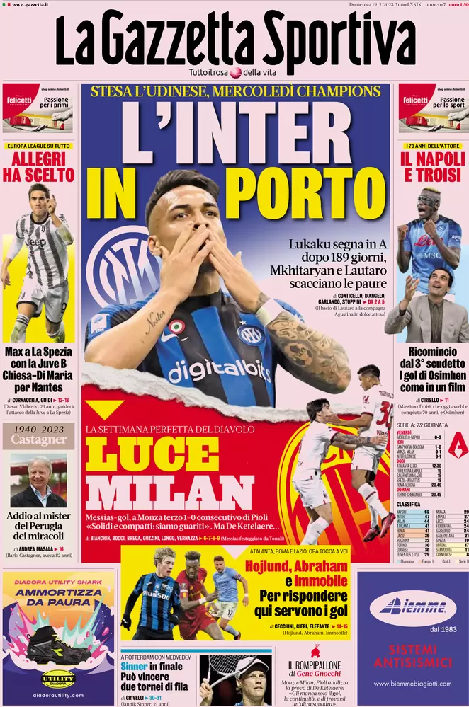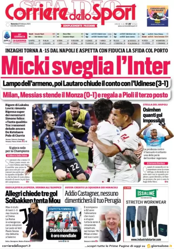CORRIERE DELLO SPORT – Nessun approfondimento per il posticipo odierno. Solamente lo schieramento delle probabili formazioni.