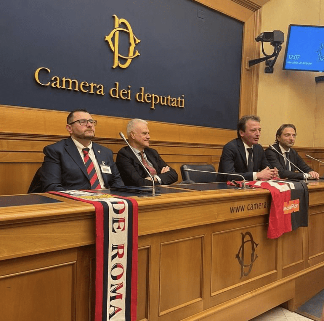 Questa mattina, alla presenza di molti tifosi rossoblu presenti nella Capitale, si è tenuta presso la sala stampa di Montecitorio la presentazione del Genoa Club Zeneixi de Roma – Francesco Bruzzone. Una location prestigiosa, come la definiscono i social network del Genoa, per la presentazione di un sodalizio di tifosi che vestono anche i panni di deputati o, addirittura, ministri, come nel caso del fratello del Presidente Zangrillo, Paolo, titolare del dicastero della Pubblica Amministrazione.