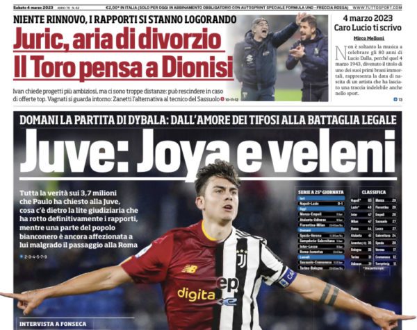 GAZZETTA DELLO SPORT – Solo un breve trafiletto nel quale si parla di Coda e Aramu che non torneranno prima della sosta del campionato. Poi nulla più.