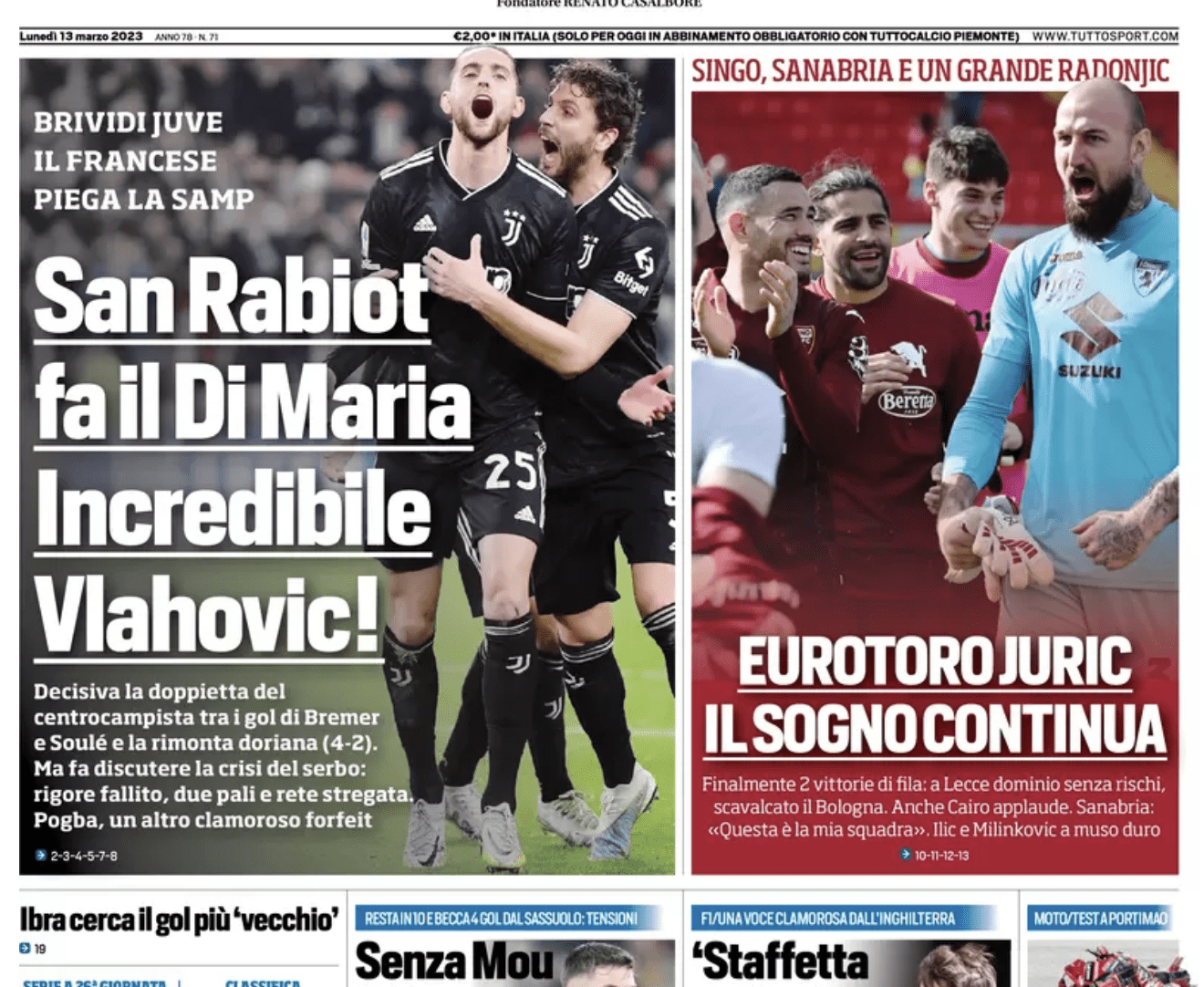 TUTTOSPORT – Chiude come sempre Tuttosport, che analizza a sua volta la vittoria rossoblu nella sfida con la Ternana e lo fa titolando: “Badelj esalta il Genoa. “Belli e straordinari, ma la Serie A è lontana“. Il titolo riprende le parole di Gilardino nella conferenza stampa del post-gara, dove ha specificato che nel primo tempo è stata “una delle nostre migliori fare, però non abbiamo ancora fatto nulla“. Lucarelli risponde: “Partita vinta dal pubblico, ma noi avremmo meritato il pari“.