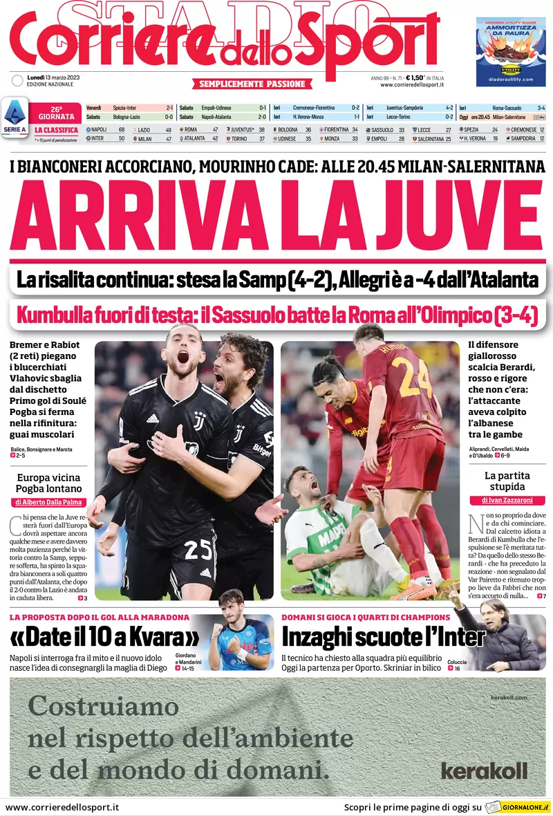 CORRIERE DELLO SPORT – “Genoa inarrestabile, Badelj piega Lucarelli” è il titolo che apre questa mattina la rassegna stampa successiva alla vittoria del Genoa contro la Ternana. “Battaglia al Ferraris: i liguri vincono e sono secondi da soli” prosegue il quotidiano, che chiosa: “Applausi al Genoa di Alberto Gilardino, il Grifone vola che è un piacere verso la Serie A“.