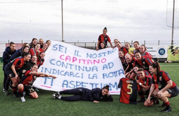 Dopo la vittoria di ieri del Genoa Women contro l’Arezzo Femminile, la capitana delle rossoblu, Giada Abate, recentemente infortunatasi al ginocchio, ha voluto ringraziare le sue compagne di spogliatoio che le hanno dedicato la vittoria dopo la partita. “Dopo l’infortunio ognuna di voi mi ha chiesto se ci fosse qualcosa che potesse fare per me. Sì, qualcosa potete farla: raggiungere l’obiettivo che ci siamo prefissate a inizio anno insieme. Quello che vi chiedo è di dare tutto in campo, fino all’ultima partita, mettendoci tutta la forza, la determinazione, la grinta e il cuore che avete. Io non potrò esserci fisicamente, ma sarò sempre presente, lì con voi consapevole di cosa siamo e di cosa abbiamo fatto sinora. Mi date forza ogni singolo giorno e vi prometto che tornerò più forte di prima, al vostro fianco. Sono orgogliosa di voi. Di noi. Grazie“.