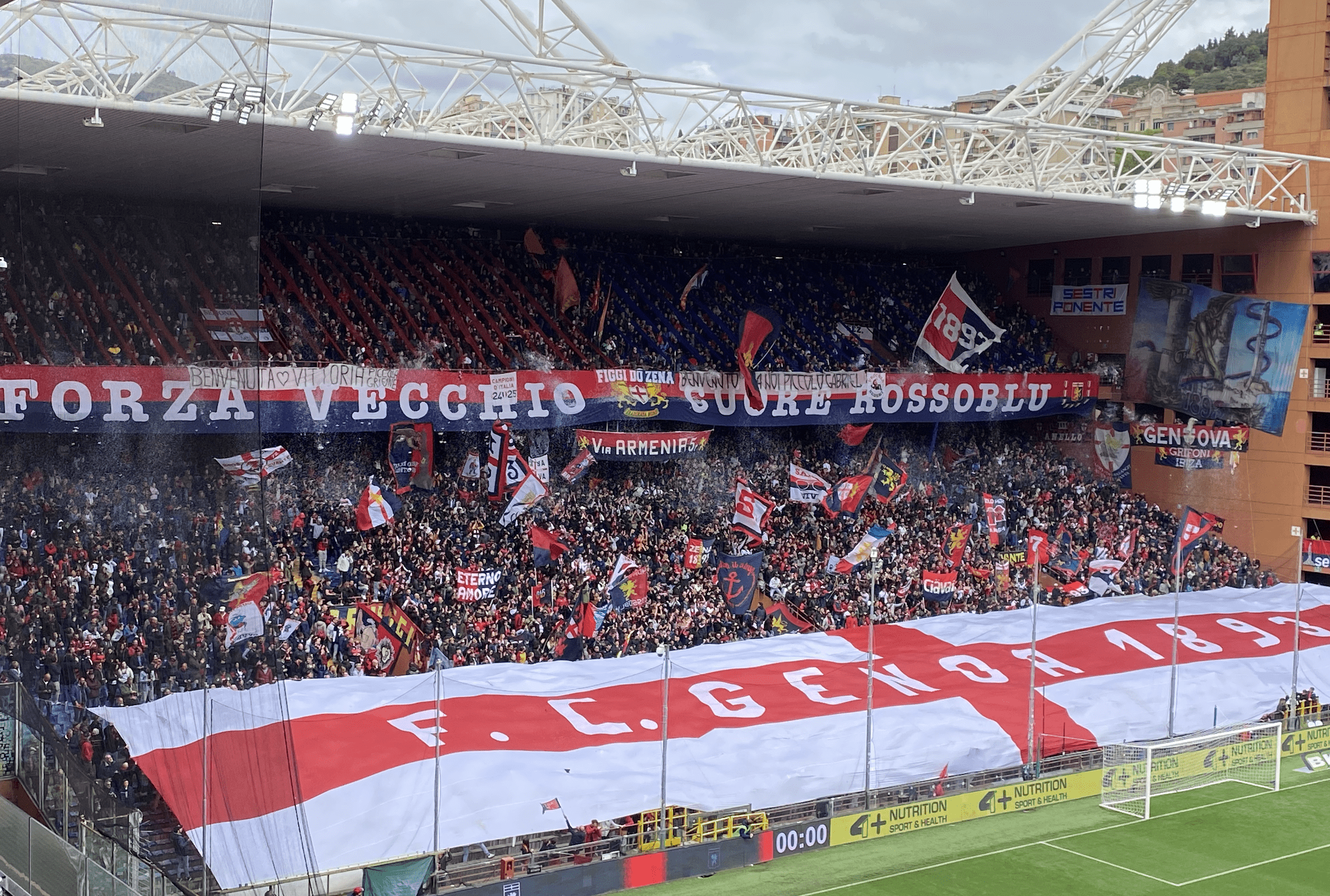 Prima del fischio d’inizio di Genoa-Perugia, i tifosi rossoblu hanno dato vita ad una coreografia in Gradinata Nord. Una coreografia “in preparazione” di quella già annunciata da settimane per l’ultima sfida casalinga contro il Bari, per la quale oggi è continuata – e continuerà anche contro l’Ascoli – una raccolta fondi all’esterno di tutti in settori del Ferraris. Clicca QUI per leggere il comunicato della TO sulla raccolta fondi appena segnalata.