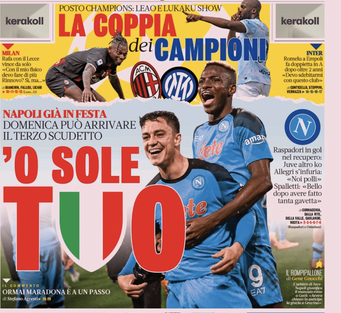 CORRIERE DELLO SPORT – Il Genoa viene menzionato solamente per il fatto che il Bari, complice la vittoria in casa del Pisa, torna a -6 in classifica dal secondo posto. Si parla di “toscani furiosi” per l’episodio del tocco dell’arbitro Colombo pochi secondi prima del rigore dovuto, ma si legge anche che “con lo scontro diretto da giocare all’ultima giornata sognare non è una chimera. Proprio no!“.
