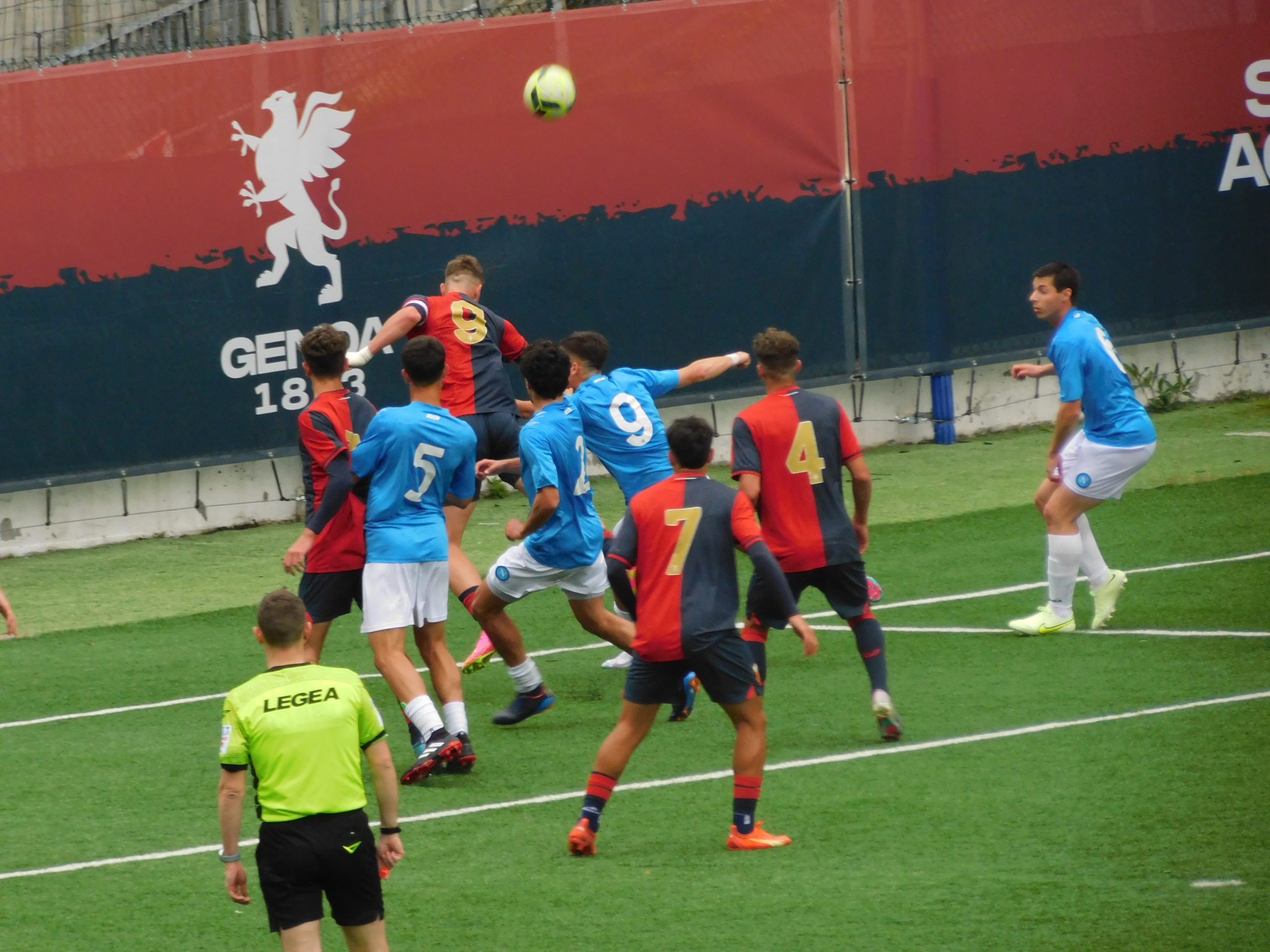 La seconda frazione si apre subito con un gol del Napoli, che accorcia le distanze con il neo-entrato Vigliotti lesto a far sua la sfera nell’area piccola. Il Genoa Under 18 non si fa abbattere e prova a scappare con Mosole, ma la sua punizione viene provvisoriamente deviata dall’estremo azzurro.