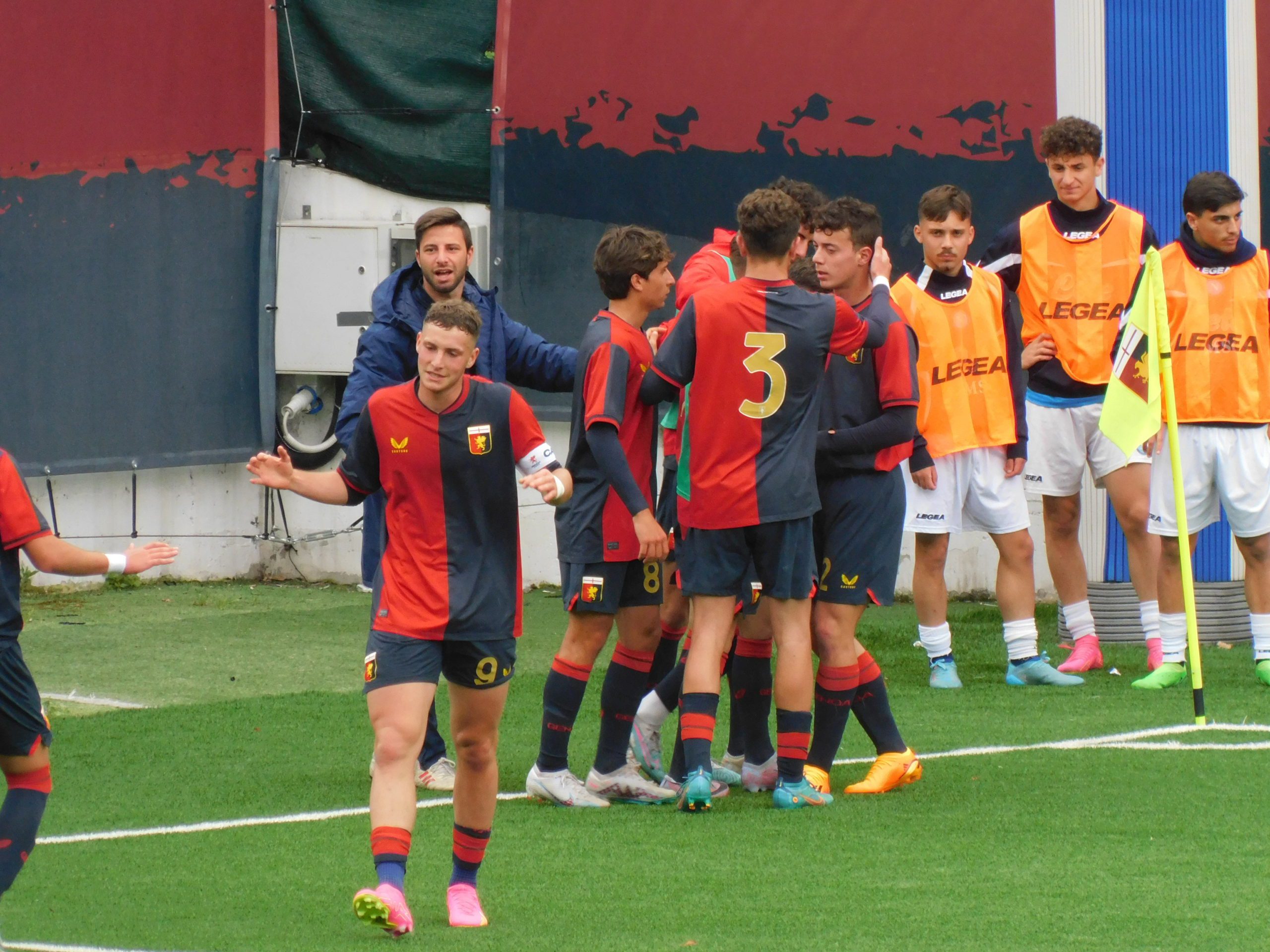 La gara di Begato, dopo una fase di studio durata qualche minuto, vede passare avanti il Genoa con un gran sinistro dalla distanza del suo numero 10, Jacopo Mosole, che insacca Puca. I Grifoncini, sulle ali dell’entusiasmo, trovano poco dopo anche il secondo centro di giornata con un’incornata di capitan Tommaso Casagrande. 2-0.