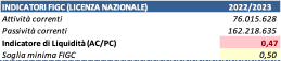 L’indicatore di liquidità, simulato sui dati al 31.12.2022 appare non rispettato. Bisogna però precisare che il calcolo degli indicatori, secondo il Manuale della Licenza Nazionale, va
