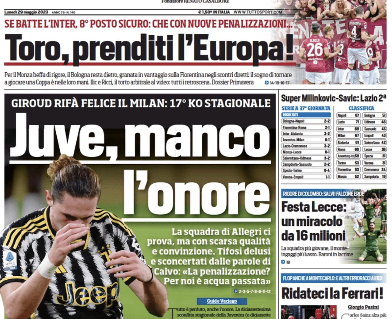 SECOLO XIX – Il Decimonono propone invece un’intervista a Stefano Sabelli, che sta già lavorando al centro sportivo “Signorini” per smaltire uno stiramento al collaterale al ginocchio sinistro rimediato nell’ultima gara contro il Bari di una decina di giorni fa. Le vacanze per il laterale destro rossoblu inizieranno oggi, ma nella sua testa c’è già la ripresa dei lavori per la prossima stagione e la volontà di “dimostrare di essere da A“. “Mi sono spaventato, per fortuna è solo uno stiramento del collaterale, non grave – spiega Sabelli – mi alleno per essere pronto a inizio ritiro. I riconoscimenti di Criscito e Strootman mi ripagano di tutta la fatica. Questo per me è un punto di partenza, voglio uno step in più“. In questo lunedì ci sono anche altri due approfondimenti legati alla stagione del Genoa. Il primo riguarda le Women rossoblu che ieri hanno chiuso la stagione con un netto 9-0 ai danni dell’Apulia Trani davanti ad una nutrita cornice di pubblico. Poi, un lungo trafiletto ricorda la scomparsa di Luciano Paccagnini e le date di rosario (stasera alle ore 18.30 alle camere mortuarie dell’Ospedale San Martino) e funerale (,martedì 30 maggio, ore 10, presso la Chiesa dell’Ospedale San Martino).