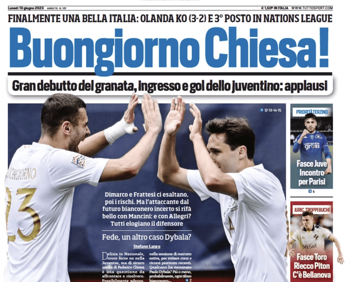 CORRIERE DELLO SPORT – Nessuna particolare novità all’interno del Corriere dello Sport, che questa mattina continua ad accostare al Genoa tre nomi su tutti: Tameze dell’Hellas Verona, Miretti della Juventus e – nome nuovo – Ranocchia del Monza. Breve accenno anche alle nozze tra Alessandro Vogliacco e Virginia Mihajlovic.