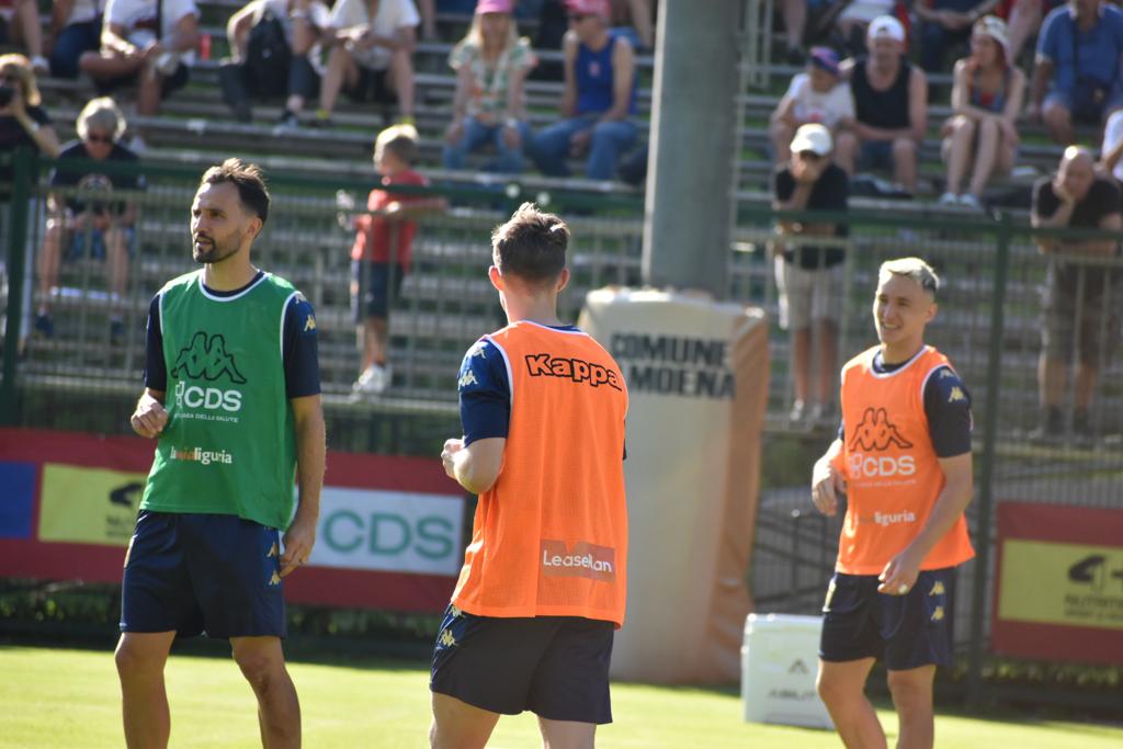 Dopo una mattinata di riposo concessa ai calciatori rossoblu dallo staff tecnico, ieri sera riunito in una cena collettiva per fare il punto della situazione, il Genoa si è ritrovato al campo sportivo “Benatti” per svolgere una seduta pomeridiana iniziata intorno alle ore 17. Sono 24 i calciatori scesi sul rettangolo verde – venti giocatori di movimento più i quattro portieri – mentre sono rimasti in palestra Accornero e Pajac. Giri di campo e lavoro personalizzato per Ekuban, che deve smaltire un leggero affaticamento muscolare, mentre arriva il primo allenamento con il pallone per Dragusin e Puscas, arrivati venerdì in ritiro.