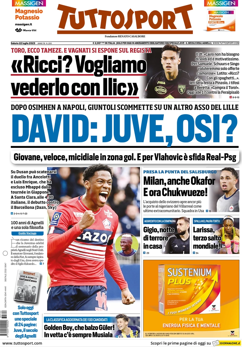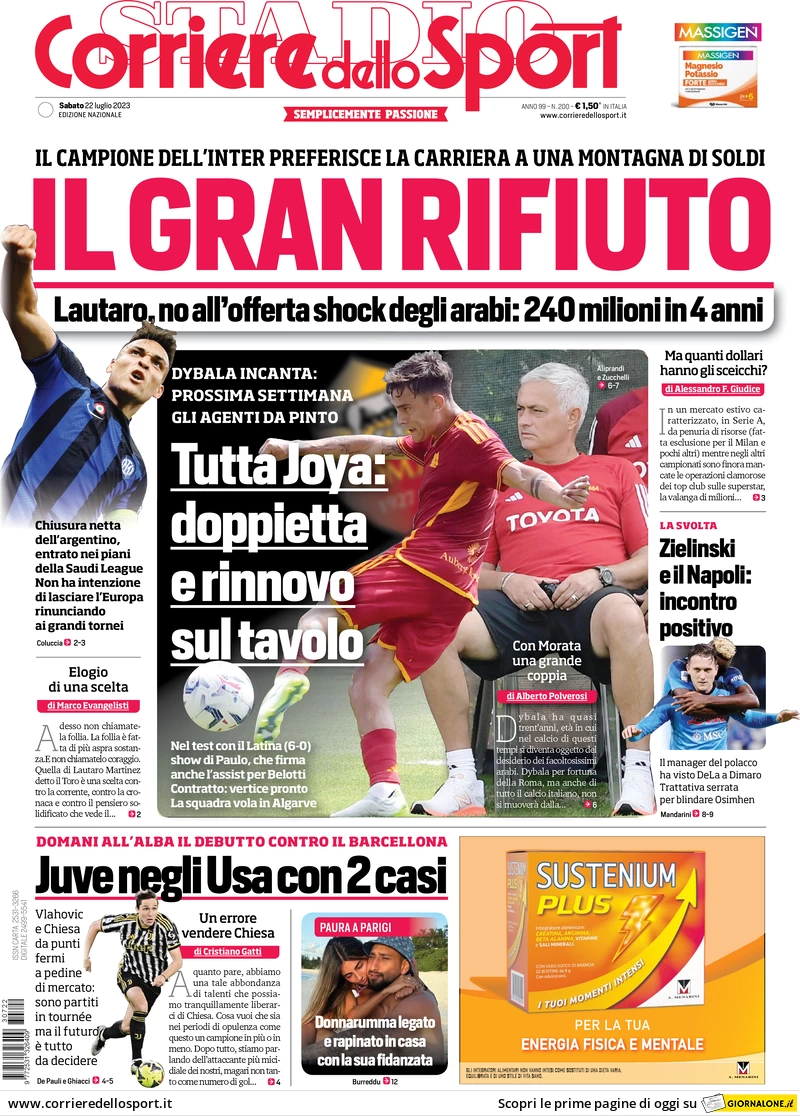 CORRIERE DELLO SPORT – Solo una rapidissima menzione per il Genoa e l’operazione Retegui in apertura di articolo sul mercato della Serie A. Nessun approfondimento dedicato.