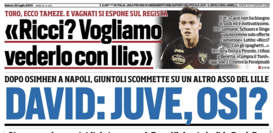 GLI APPROFONDIMENTI SUL GENOA CORRIERE DELLO SPORT – Solo una rapidissima menzione per il Genoa e l’operazione Retegui in apertura di articolo sul mercato della Serie A. Nessun approfondimento dedicato. GAZZETTA DELLO SPORT – “Missione Italia, Genoa ai dettagli per avere Mateo. Vale 17 milioni” titola la Gazzetta dello Sport. Su metà pagina la rosea analizza i passaggi della … Leggi tutto Rassegna Stampa del 22 Luglio, Genoa-Retegui: tutti i titoli dei quotidiani. Ma Zangrillo smorza i toni