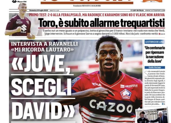 SECOLO XIX – Il quotidiano riprende nel titolo l’espressione “campanello d’allarme” utilizzata da mister Gilardino nel dopogara di ieri, dopodiché approfondisce la cronaca della partita persa dai rossoblu contro il Venezia per 4-1. “Gilardino: “Dispiace, eravamo contati e aspetto rinforzi”. Servono almeno 6-7 giocatori. Martin da rivedere, in attacco Coda e Puscas in difficoltà” prosegue nel sottotitolo il Decimonono, che chiosa parlando della campagna abbonamenti che ha visto la Nord esaurita e che adesso, dal 26 luglio, vedrà partire la vendita libera. Approfondimento anche sul mercato, col nome di Retegui in primo piano: mancano solo gli ultimi dettagli, poi arriverà in Italia. Sprint per Meitè e Zanoli, e in mezzo al campo rispunta Miretti.