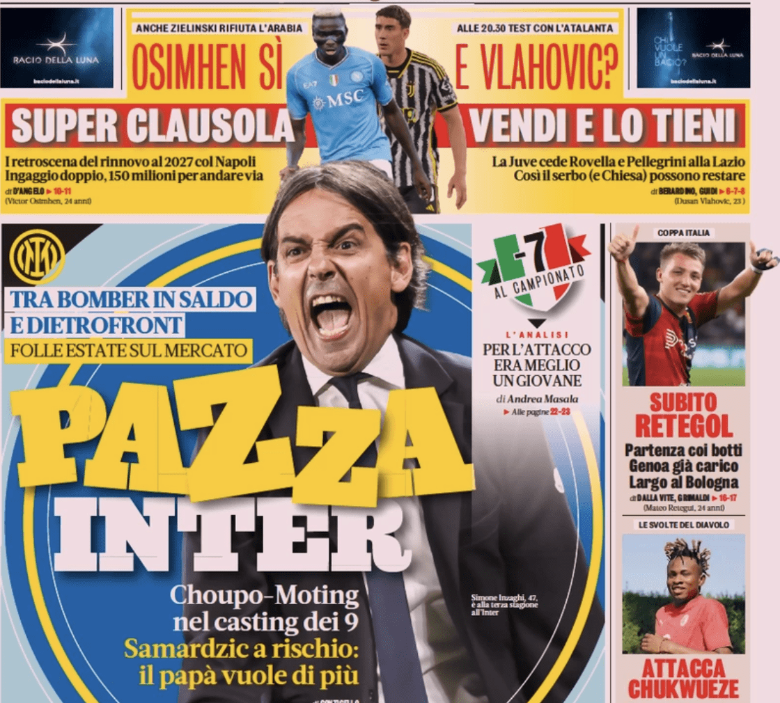 TUTTOSPORT – “Retegui, un debutto da record” è il titolo in prima pagina di Tuttosport in riferimento alla partenza da urlo del nuovo centravanti rossoblu, che ha segnato una doppietta nella sua prima gara ufficiale con la maglia del Genoa. Si prosegue anche all’interno dell’edizione odierna del quotidiano sportivo dove si legge: “Retegui boom. Il Genoa è già ai suoi piedi“. Poco sopra il titolo, poi, viene messo in evidenza come “col popolo rossoblu goda pure il Mancio“.