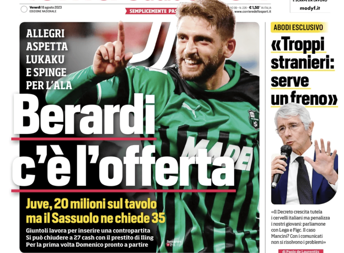 GAZZETTA DELLO SPORT – La Gazzetta dello Sport illustra i “venti messaggi dal campionato” riferendosi ad un’analisi complessiva della prossima Serie A con le sue venti formazioni. Una Serie A che, secondo il quotidiano in rosa, potrebbe avere il Genoa come “sorpresa“. “E se la squadra di Gilardino fosse la sorpresa?” si domanda la rosea. “Impianto solido, due incursori fantasiosi come Messias e Gudmundsson, Retegui, centravanti azzurro come il Gila, che ha già stregato Marassi. Domani derby argentino Retegui-Beltran (Fiorentina) per incendiare una stagione ambiziosa“. Ovviamente a questo breve approfondimento ne segue un secondo legato a Malinovskyi ormai ad un passo che fa “sognare in grande” la piazza rossoblu, che domani regalerà un Ferraris quasi da tutto esaurito. Anche qui si ribadisce di un Parigini direzione Feralpisalò.
