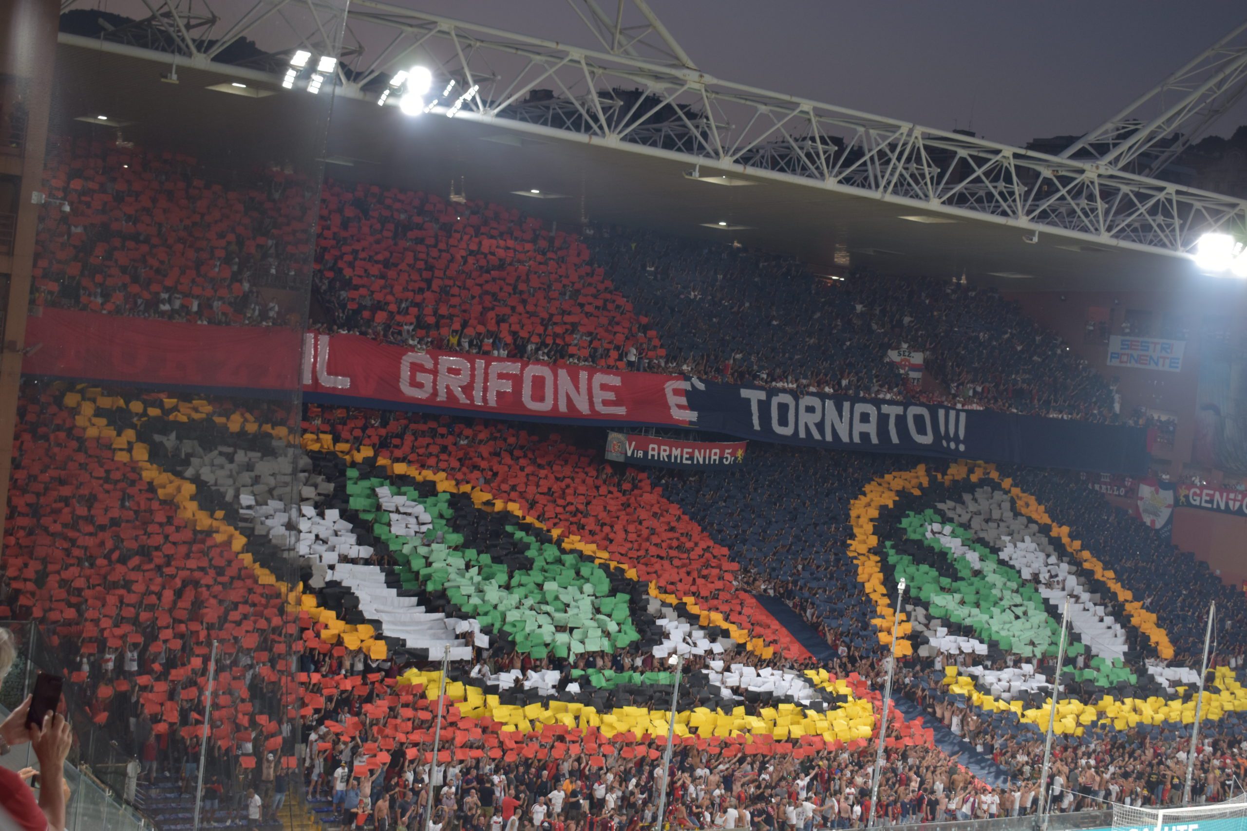 C’era attesa per vedere quale sarebbe stata la coreografia che la Gradinata Nord e tutto il Ferraris avrebbero offerto prima dell’inizio di Genoa-Fiorentina. Pochi minuti fa l’attesa si è consumata e la coreografia svelata a tifosi e addetti ai lavori. Ecco le prime immagini: