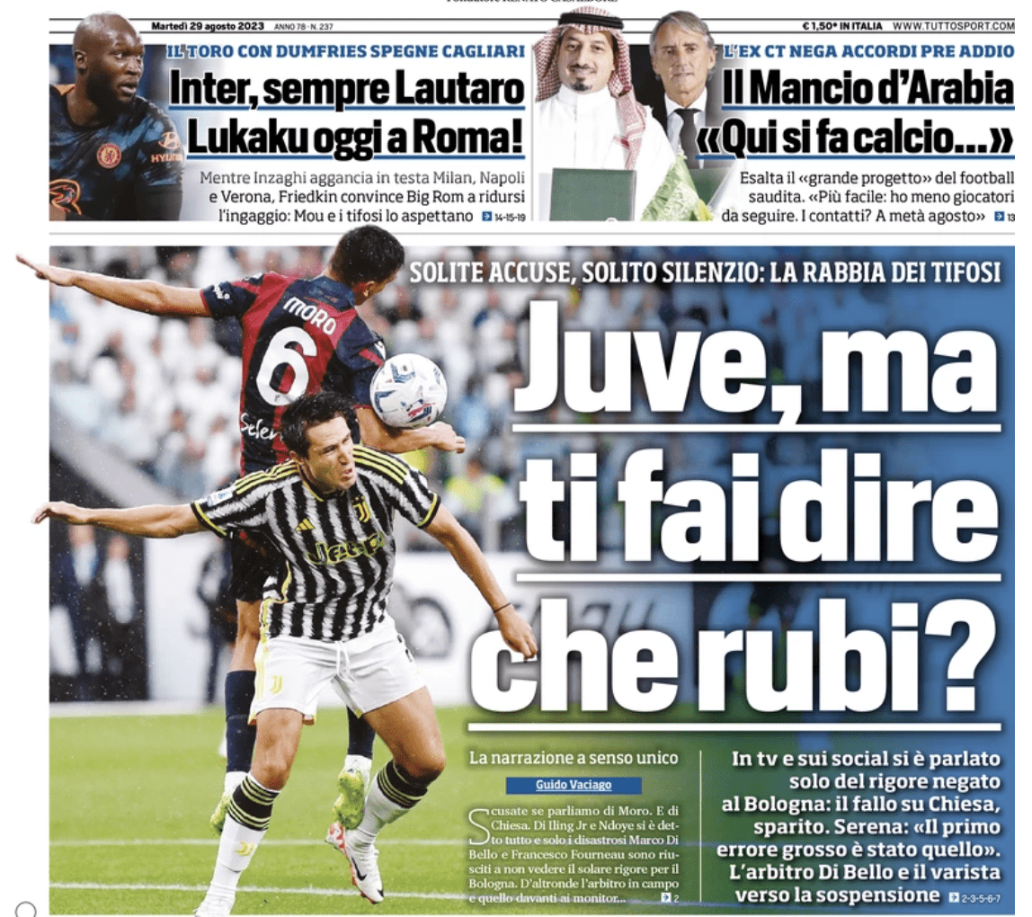 REPUBBLICA – “Il colpo di Roma non muta i progetti. Rush di mercato sognando Bonucci” titola Repubblica, che torna sulla “rivoluzione” adottata da Gilardino all’Olimpico, ma evidenzia come occorra comunque rinforzare la rosa e accontentare il mister rossoblu nelle sue richieste. Anche qui, in calce all’articolo, si rimanda alla polemica del Presidente Zagrillo contro il VAR comparso per pochi secondi sui maxischermi dell’Olimpico. “Il VAR sul maxischermo è una delle tante cose proibite dai regolamenti vigenti ma possibili in qualche stadio, diciamo così…” è quanto ha scritto Zangrillo sui propri social network diffondendo anche un’immagine di Immobile che indica il maxischermo all’arbitro Marinelli. Nell’approfondimento dedicato alla Sampdoria, si parla di un possibile nome a sorpresa per l’attacco blucerchiato e sarebbe quello di Puscas. Per il momento, però, la formazione blucerchiata deve prima piazzare altri calciatori.