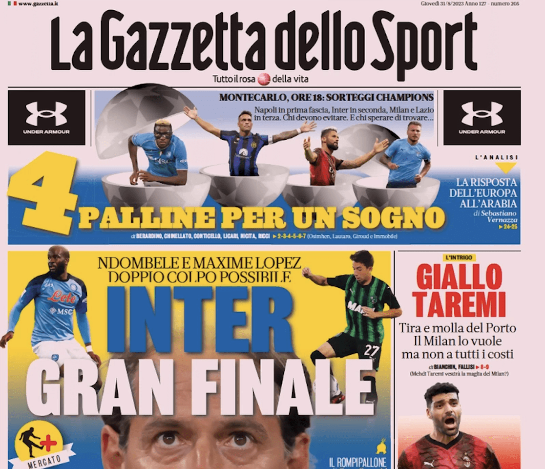 GAZZETTA DELLO SPORT – Oltre a ritornare sul capitolo Ndombelè, si torna a parlare di mercato in uscita per il Genoa, col profilo di Aramu che sarebbe diretto al Bari. Kutlu non viene menzionato negli articoli di mercato, compare solamente tra gli obiettivi rossoblu nello specchietto a pagina 26 della rosea.