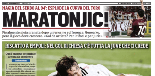 GLI APPROFONDIMENTI SUL GENOA CORRIERE DELLO SPORT – “Radonjic, lampo nel buio. Genoa, un KO immeritato” è il titolo del Corriere dello Sport che entra nel merito della sconfitta rossoblu in casa granata. La formazione di Gilardino viene descritta sempre come organizzata e compatta tra le linee, “non perde mai la bussola e controlla con personalità, cercando … Leggi tutto Rassegna Stampa del 4 Settembre, da “KO immeritato” a ” incornata fatale”. I titoli del post Torino-Genoa