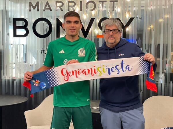 C’è un po’ di Genoa in tutto il mondo. Lo avevamo documentato lo scorso 7 settembre in occasione dei 130 anni del club rossoblu, lo conferma la foto che riceviamo e pubblichiamo. Direttamente da Charlotte, negli Stati Uniti, Stefano Gaggero (tra i fondatori del podcast “Genoani Si Resta“, oggi divenuto un vero e proprio club di tifosi grazie al lavoro dello stesso Stefano Gaggero, da Charlotte, di Matteo Cevasco e di Francesco Talarico) si è immortalato con Johan Vasquez al suo fianco, direttamente dal ritiro della rappresentativa sudamericana.