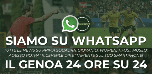 Da oggi Buoncalcioatutti sbarca anche su Whatsapp. Un ulteriore canale sarà a vostra disposizione per avere tutte le notizie di casa Genoa sul vostro smartphone con una semplice notifica. Per iscrivervi al canale basta avere installata l’applicazione di Whatsapp sul proprio telefono e cliccare QUI confermando l’iscrizione la canale. ⬇️⬇️⬇️⬇️ #Genoa ⬇️⬇️⬇️⬇️ pic.twitter.com/tmjil0jCPn — Buon … Leggi tutto Buoncalcioatutti sbarca su Whatsapp. Ecco come iscriverti