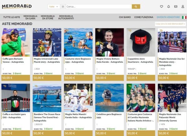 Tutti i cimeli all’asta sono all’indirizzo www.memorabid.com/stellenellosport