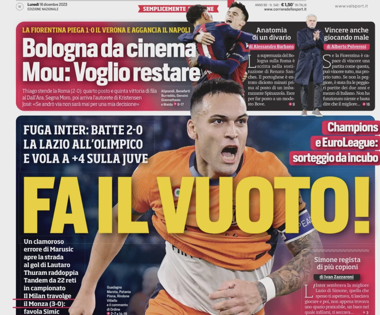 GAZZETTA DELLO SPORT – Della sfida tra Genoa Primavera e Roma Primavera fa menzione anche il quotidiano in rosa. La Roma con questo successo agguanta il Milan.